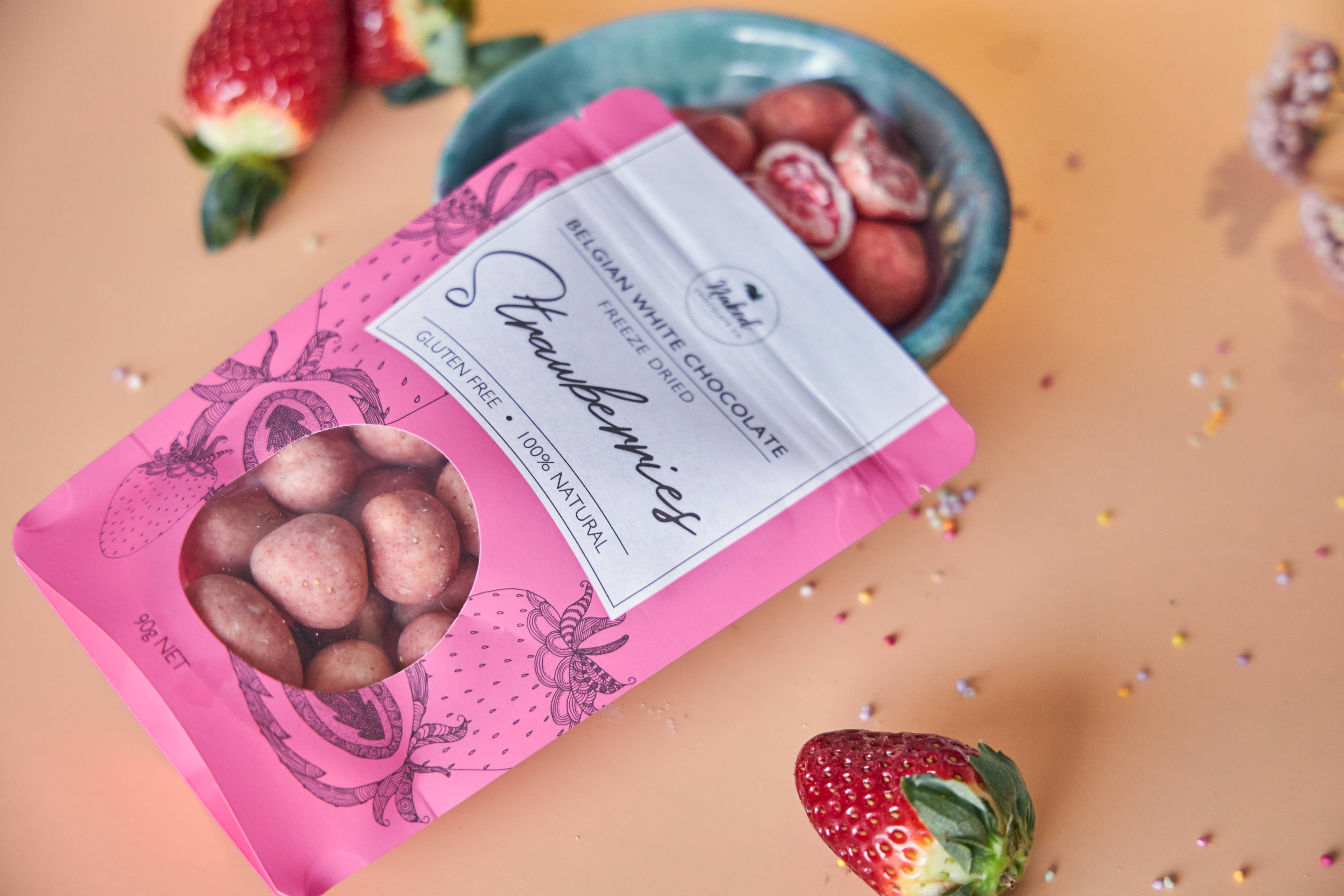 The ultimate flavour combination pairing premium Belgian white chocolate and tasty freeze dried strawberries.